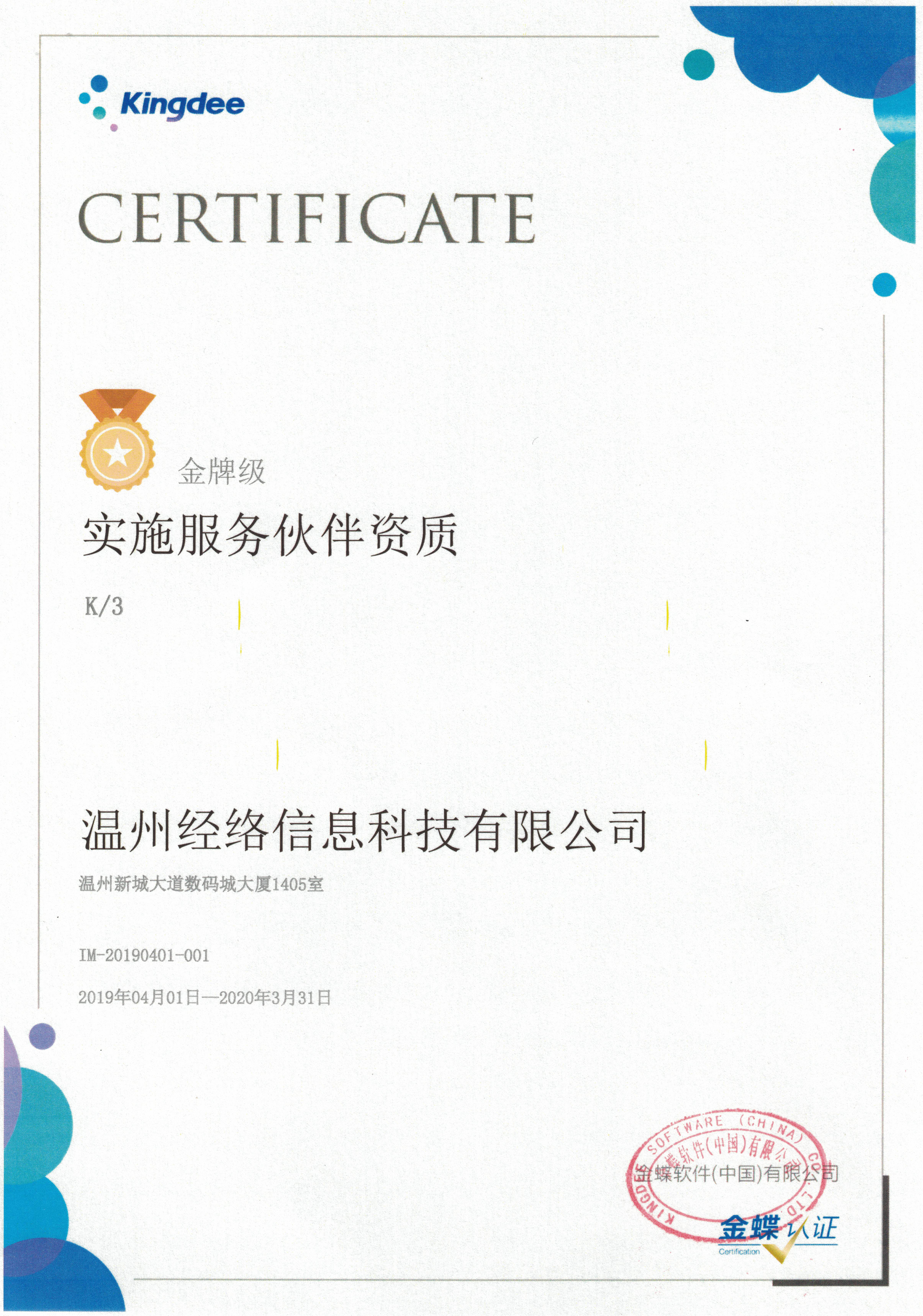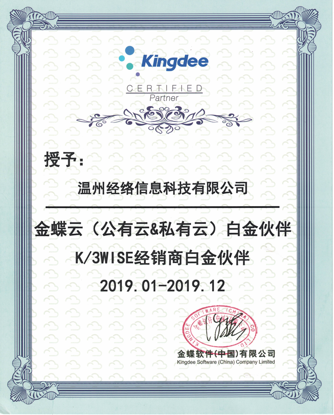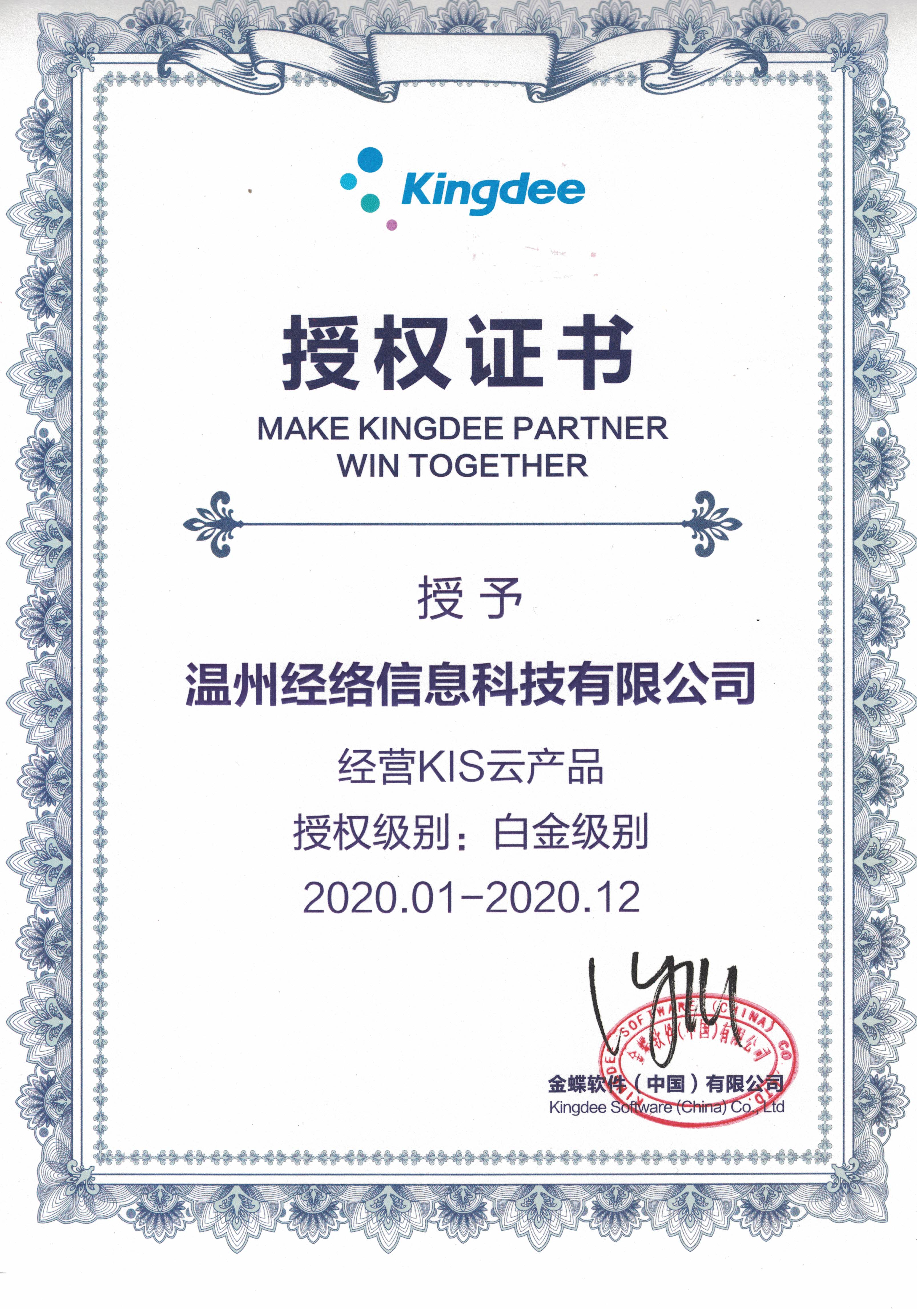 溫州經(jīng)絡(luò)信息科技成立于2008年,是一家專注于企業(yè)管理軟件開發(fā)及管理咨詢的高科技企業(yè)。我公司是金蝶軟件溫州地區(qū)白金合作伙伴、四星服務(wù)伙伴,負(fù)責(zé)溫州地區(qū)金蝶軟件產(chǎn)品銷售、軟件實(shí)施培訓(xùn)和售后服務(wù)。公司主營財(cái)務(wù)軟件、進(jìn)銷存軟件、生產(chǎn)管理軟件、ERP管理軟件、車間MES管理系統(tǒng)等企業(yè)管理軟件,為溫州企事業(yè)單位提供完整的信息化解決方案。