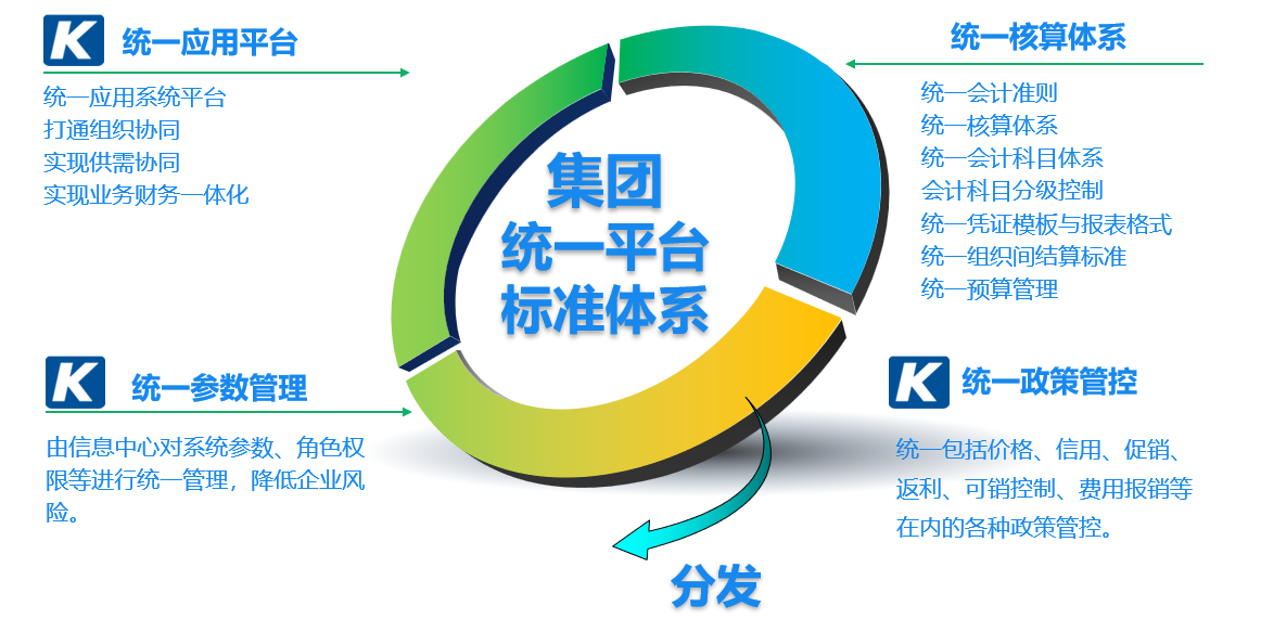 基于金蝶云.星空搭建強力統一的多組織ERP應用平臺,實現基礎資料統一管理(科目、客戶、供應商、物料)、統一政策管控(價格、信用、調價、成本核算方法)、統一參設設置管控、統一權限管控