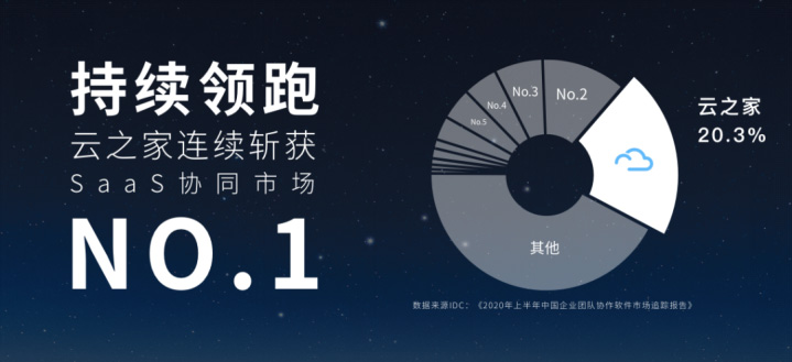根據(jù)IDC近日發(fā)布的最新《2020年上半年中國(guó)企業(yè)團(tuán)隊(duì)協(xié)作軟件市場(chǎng)追蹤報(bào)告》顯示:上半年云之家以 20.3%的份額再次蟬聯(lián)SaaS企業(yè)團(tuán)隊(duì)協(xié)作市場(chǎng)第一名。據(jù)往年IDC數(shù)據(jù)顯示:云之家從2015年開始,連續(xù)3年在中大企業(yè)移動(dòng)辦公市場(chǎng)占有率第一。從2018年至今,在SaaS企業(yè)團(tuán)隊(duì)協(xié)作市場(chǎng)持續(xù)第一。