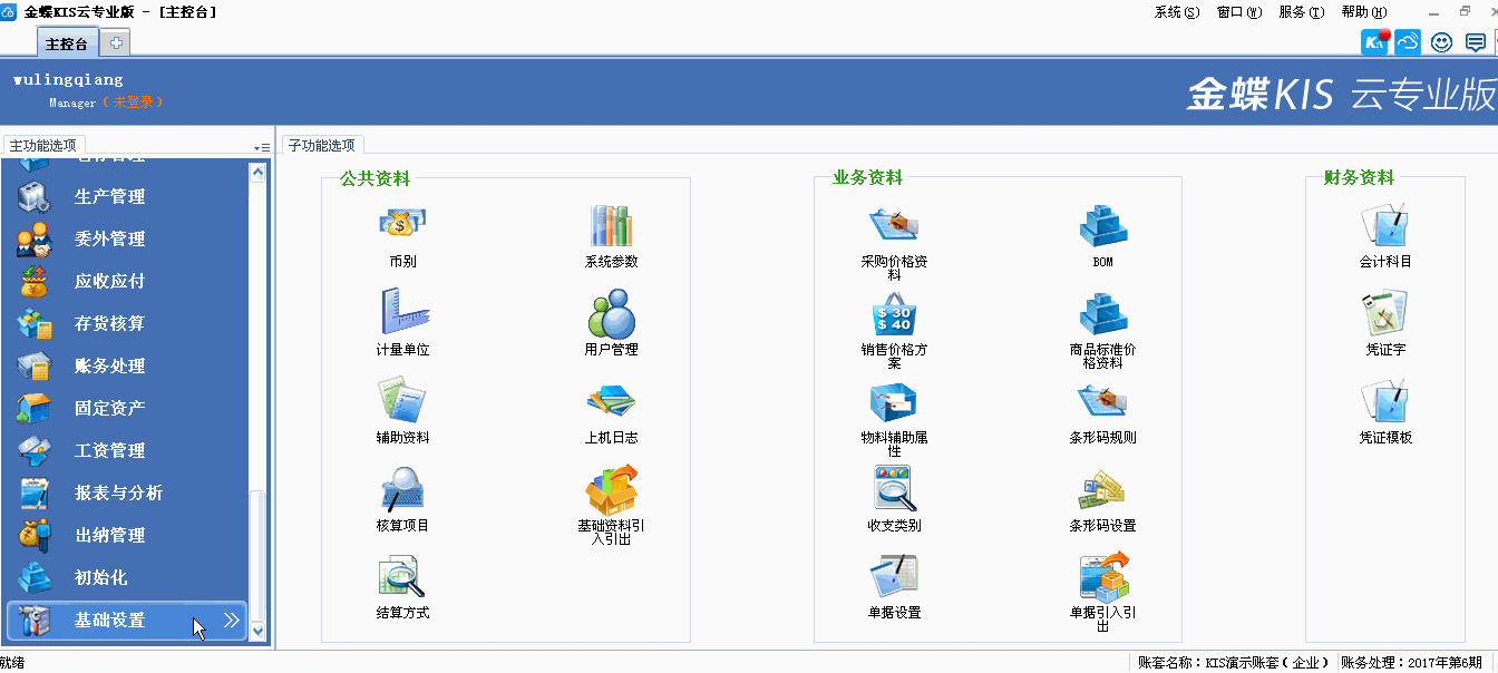 步驟一、在全部核算項目界面,然后單擊【物料】,點管理