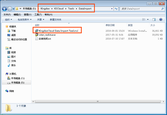 2) 通過執行第一個文件來安裝數據引入工具(如果安裝中遇到問題可以參考“安裝說明.txt”來解決)。