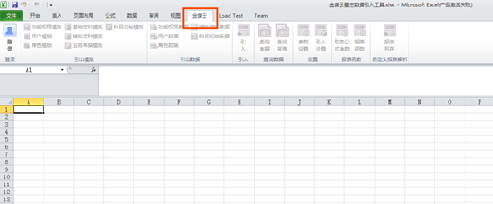 第二步:點擊【金蝶云星空數據引入工具】或任意Excel文件來打開該工具,在打開的Excel中可以看到一個【金蝶云】頁簽。