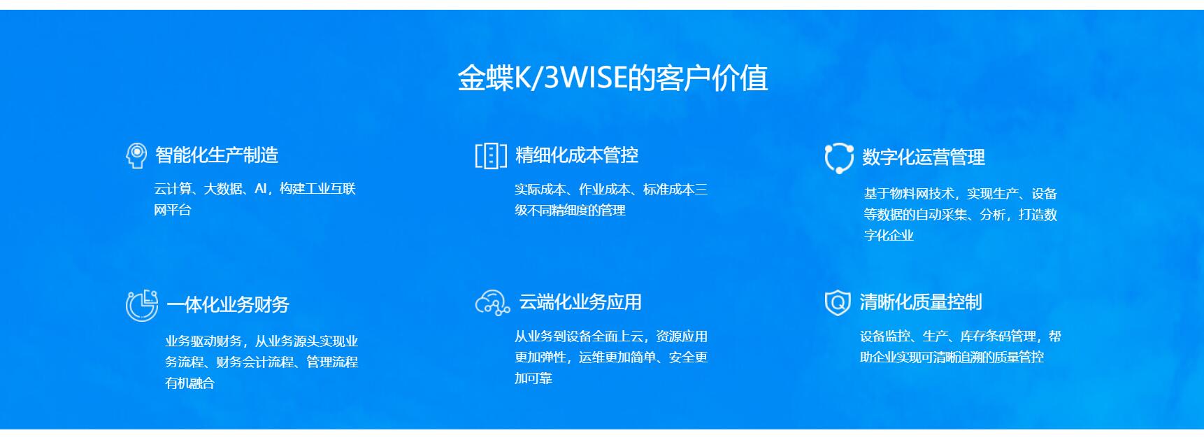 金蝶K/3 WISE是一款面向成長型企業(yè),適應(yīng)企業(yè)在快速成長過程中業(yè)務(wù)與管理的不斷變化的信息化平臺,實(shí)現(xiàn)云服務(wù)、ERP、物聯(lián)網(wǎng)的融