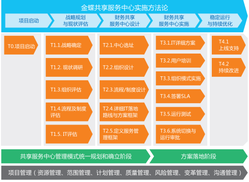 金蝶的財務共享高藍顧問團隊,遵循項目管理理論,借鑒金蝶大量財務共享的優秀實施項目經驗,在十多年的實踐經驗基礎上,創造性地提出了金蝶財務共享高級業務藍圖實施體系,用于規范和指導顧問的日常實施工作,確保項目的正常實施,從而“幫助顧客成功”。在項目的具體實施過程中,金蝶公司將充分尊重客戶的個性化需求,通過標準化服務與個性化服務相結合,為客戶提供快速、有效的實施服務。